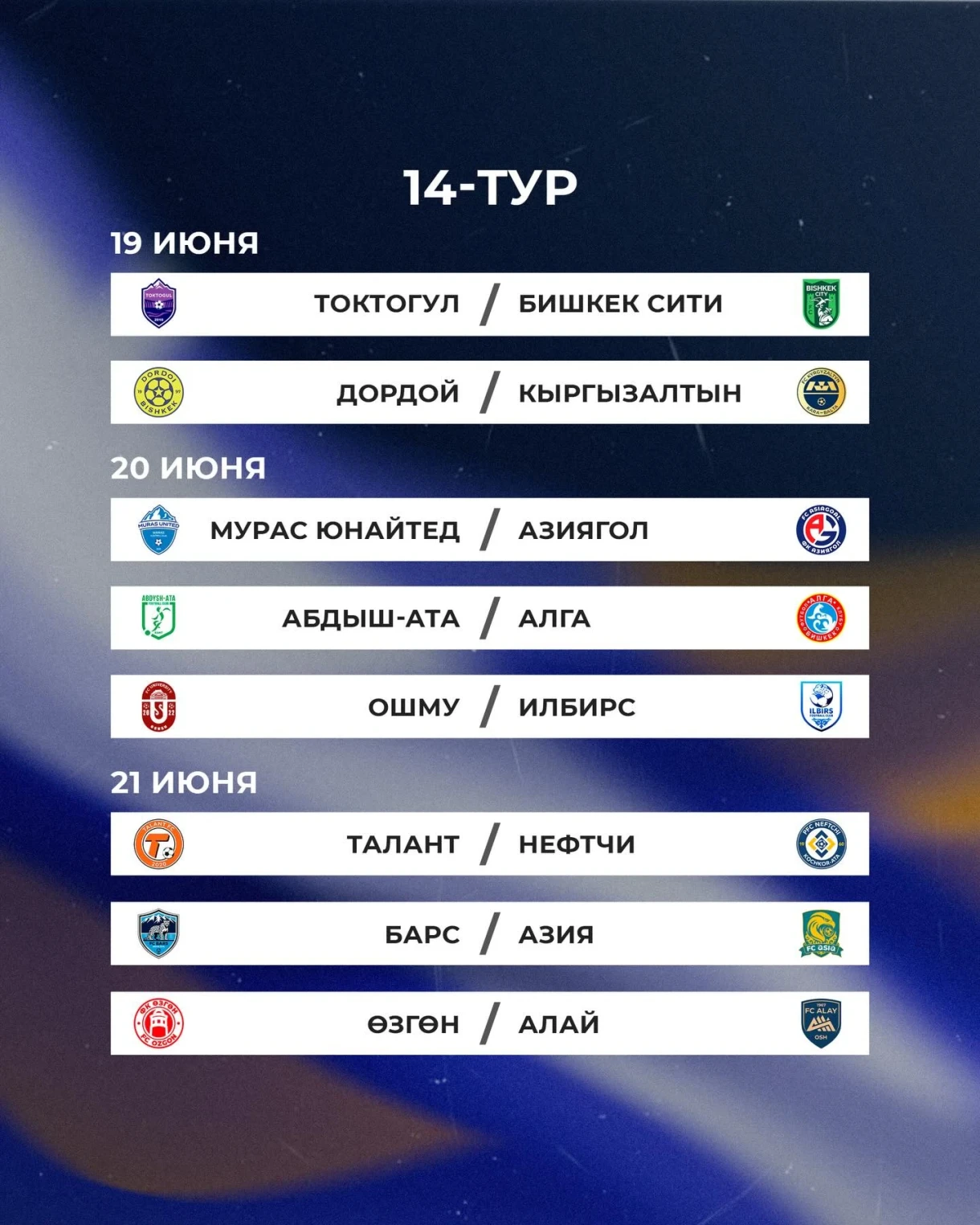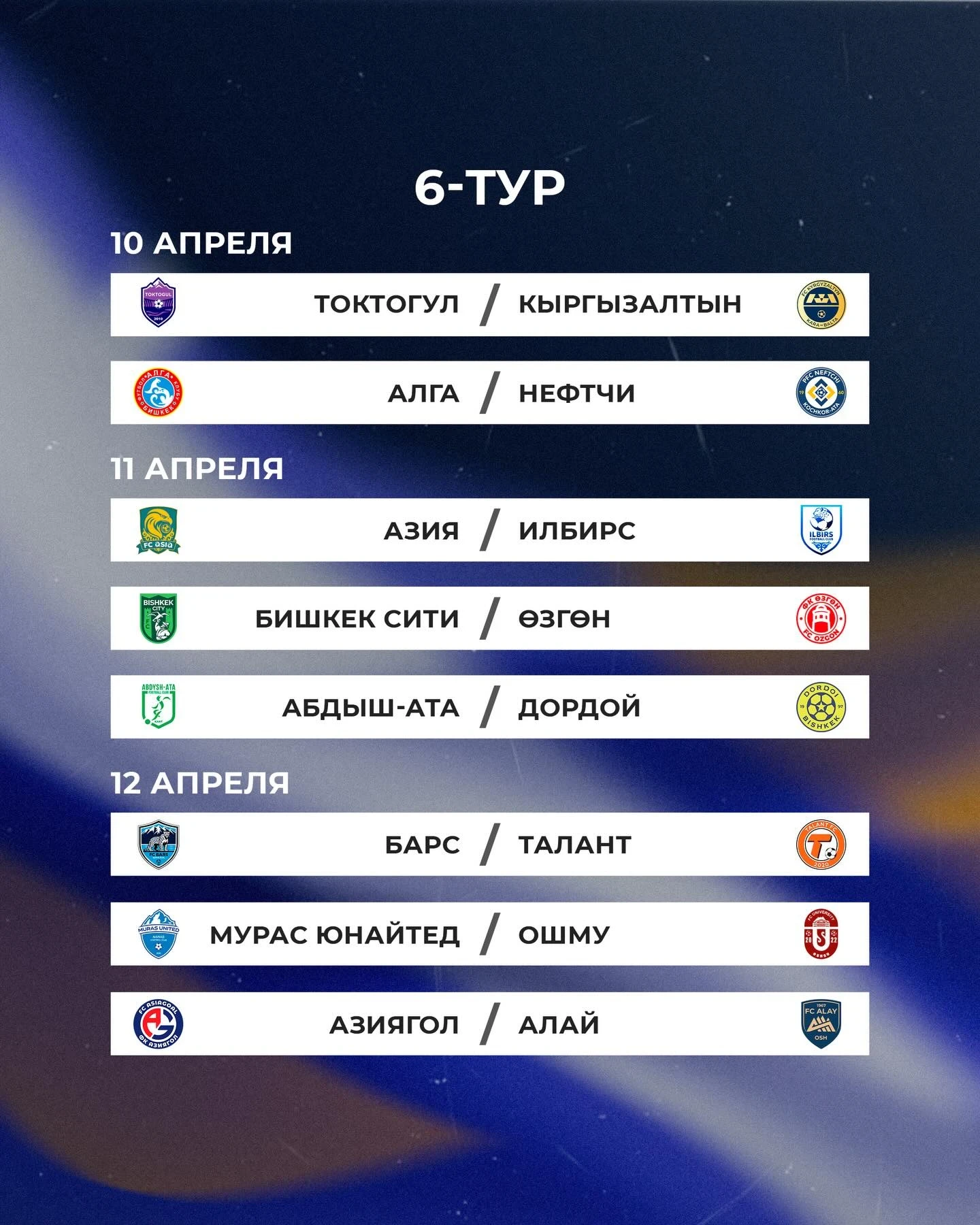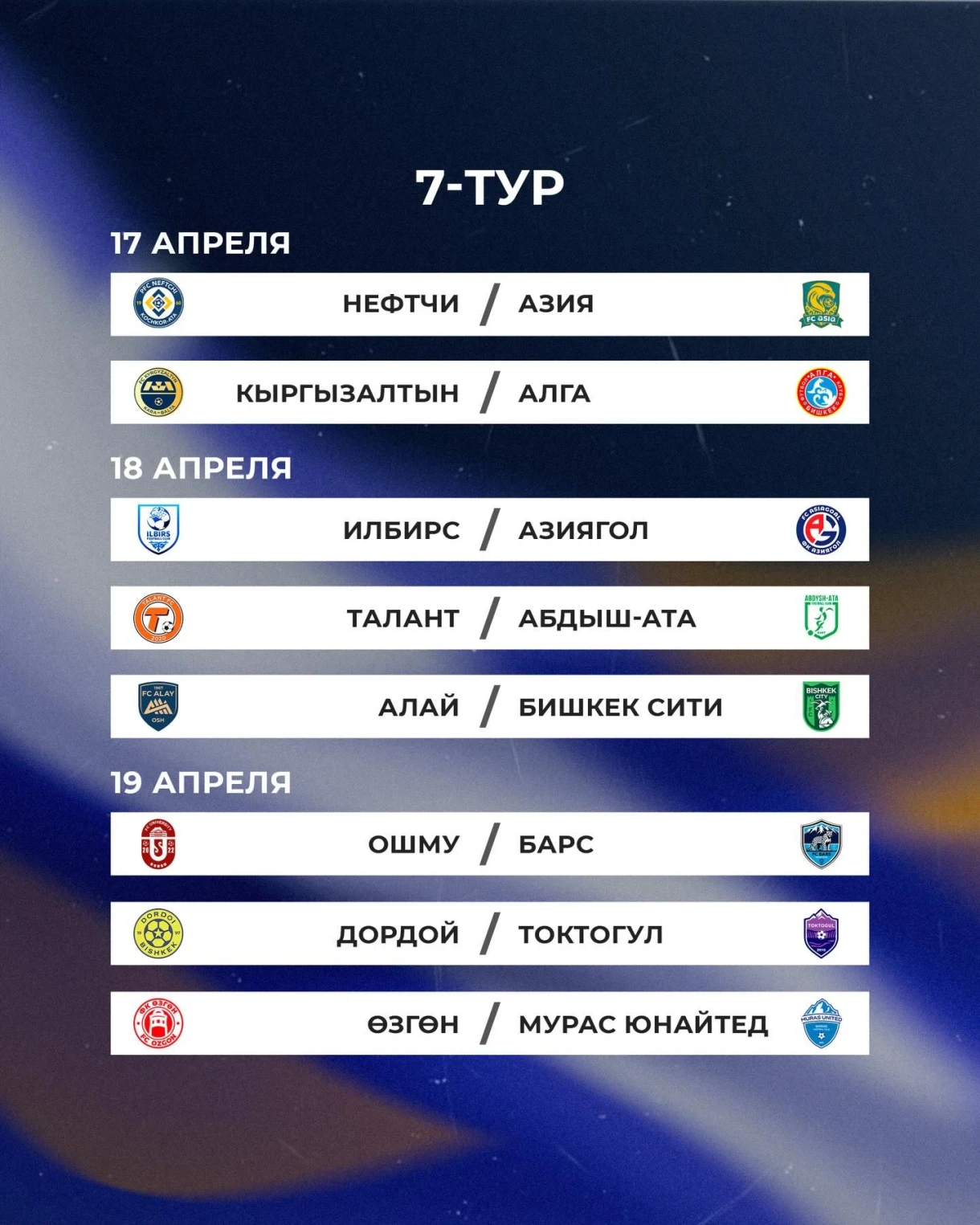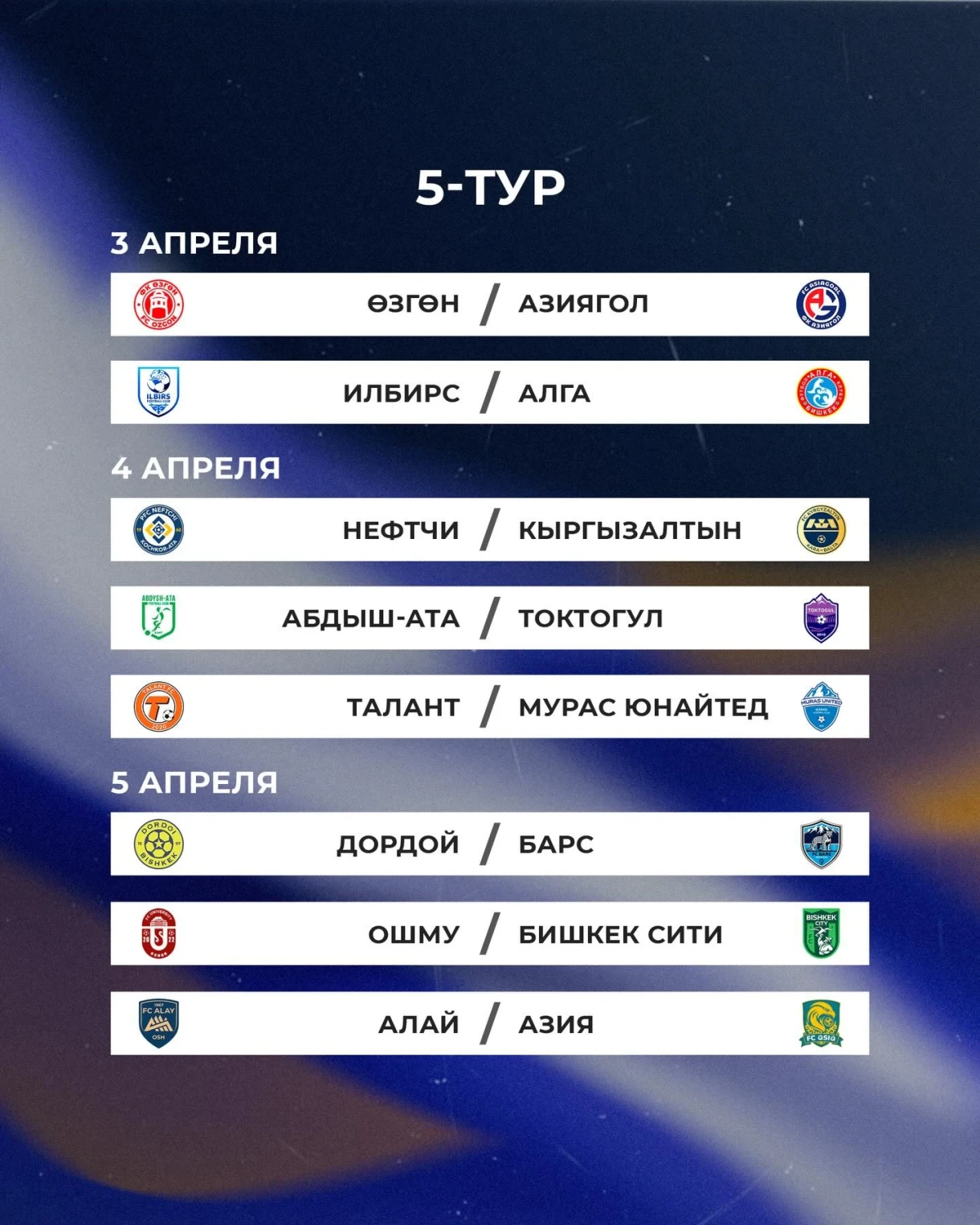 Матчи между командами «Токтогул» и «Мурас Юнайтед», а также «Азия» и «Дордой» перенесены на 18 марта.