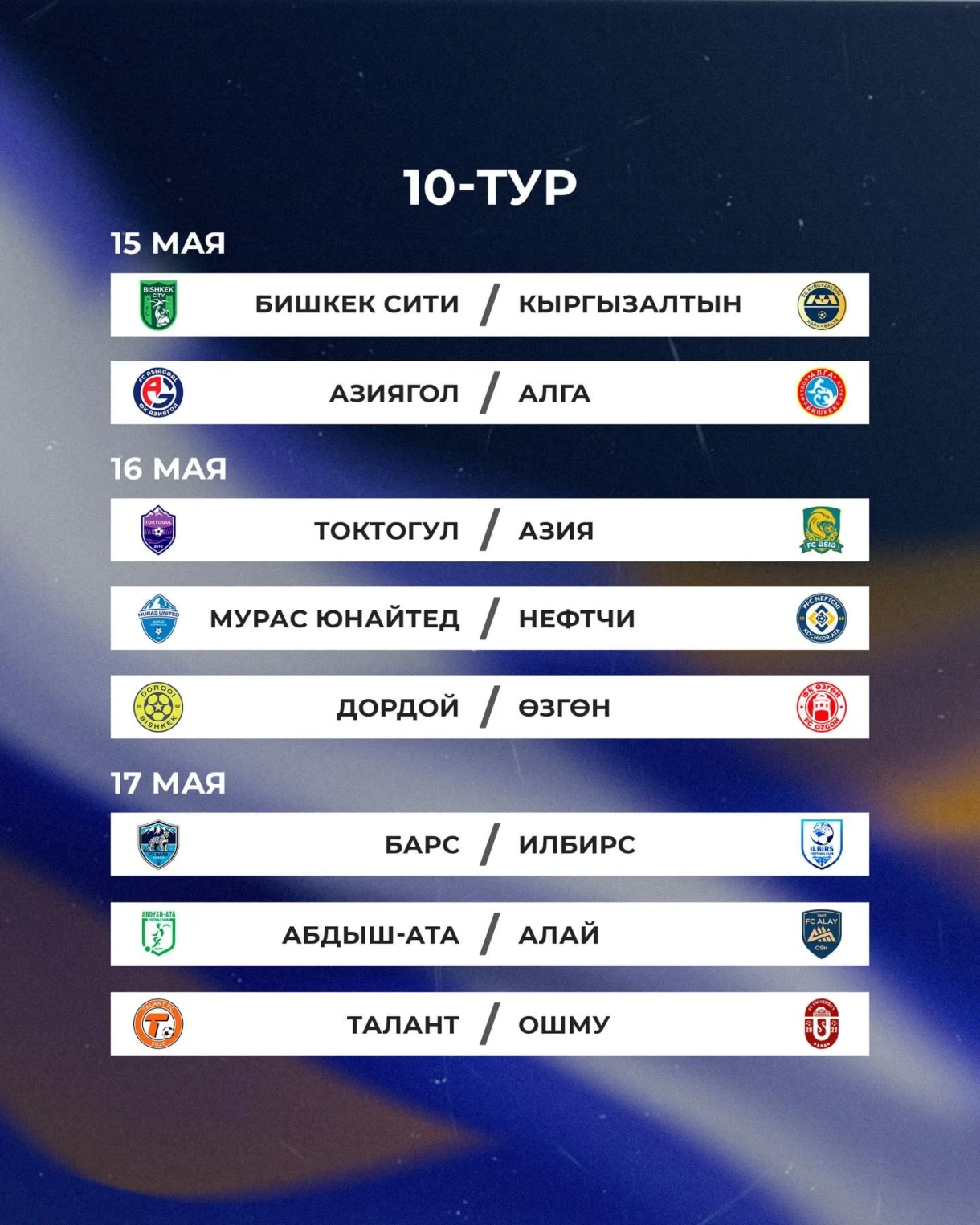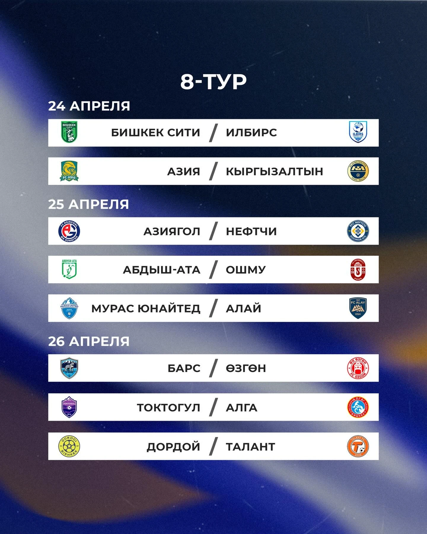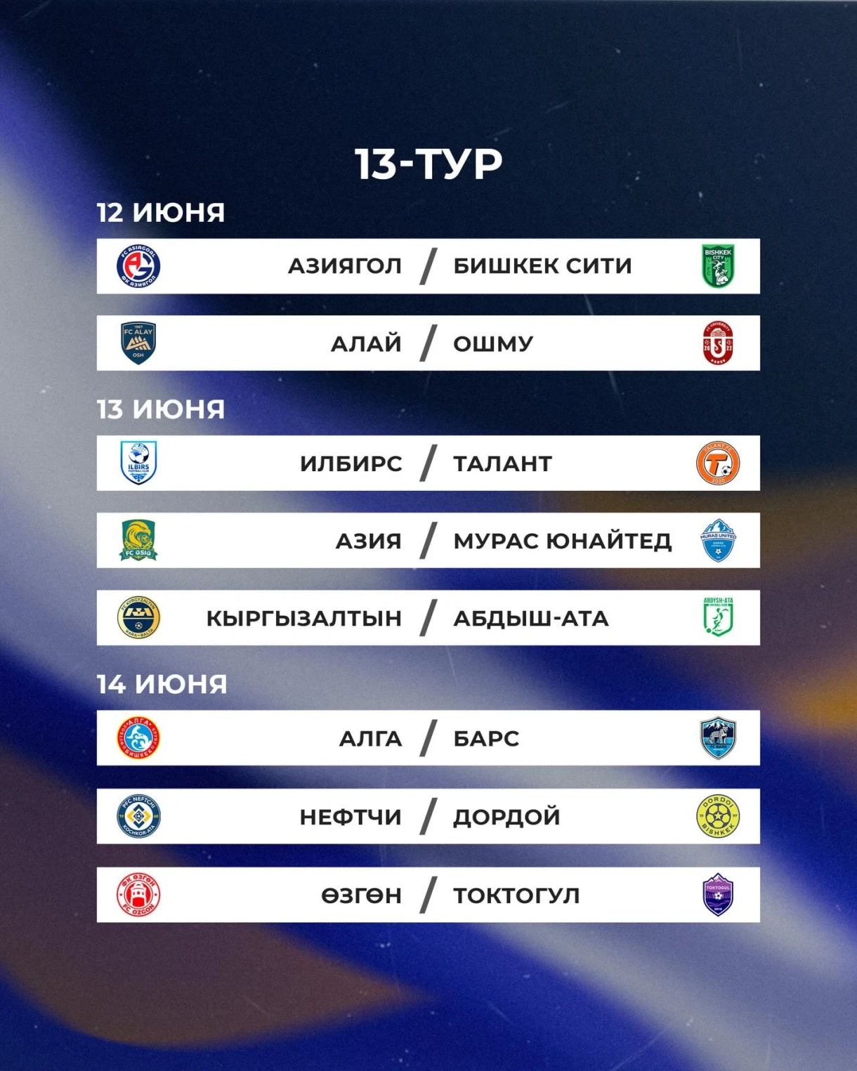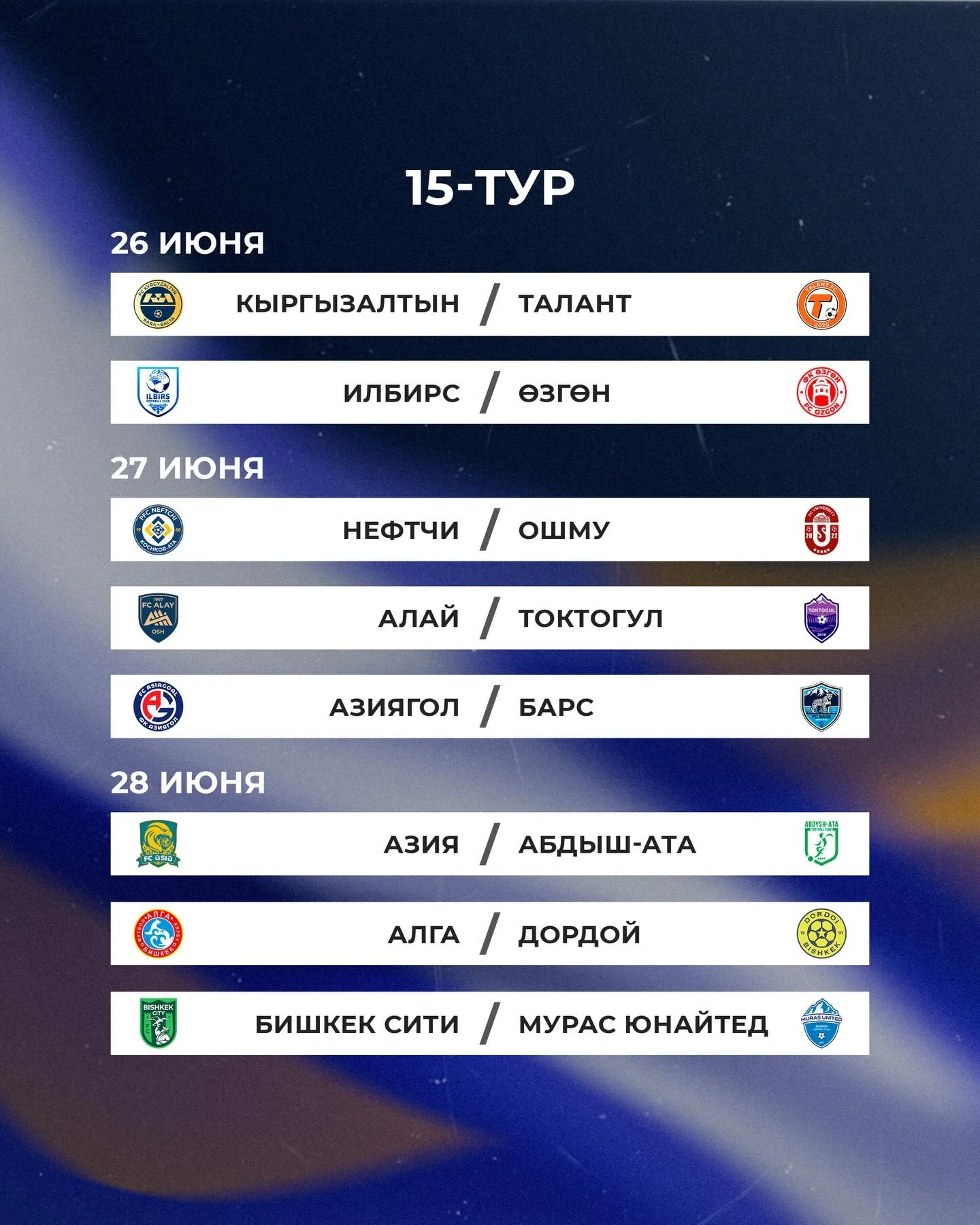 Матчи между командами «Токтогул» и «Мурас Юнайтед», а также «Азия» и «Дордой» перенесены на 18 марта.
