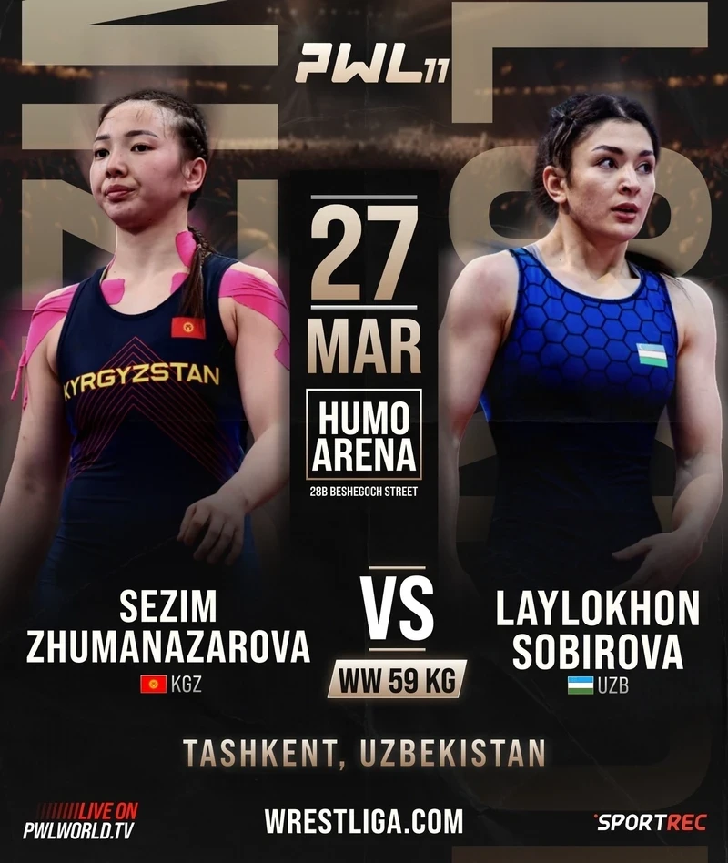 27 марта в Ташкенте пройдет турнир PWL 11, который станет площадкой для схватки в женской борьбе в категории до 59 кг. Эта информация была озвучена Professional Wrestling League.