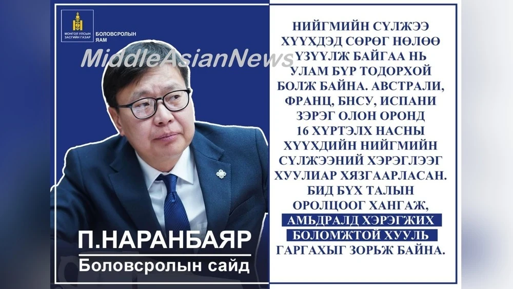 На своем официальном сайте министр образования Наранбаяр Пүрэвсүрэн опубликовал информацию о том, что министерство разрабатывает законопроект, направленный на ограничение использования социальных сетей детьми, ссылаясь на растущие доказательства их негативного влияния на молодежь, — сообщает MiddleAsianNews.