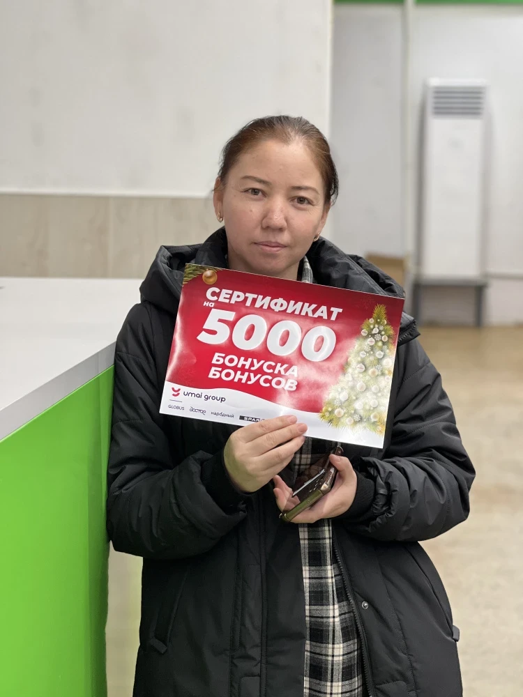 - Сертификаты на 10 тысяч бонусов получили: Суусар Молдалиева, Юрий Прокопчук, Назира Усенова, Наталья Демьяненко и Диана Иванчук.