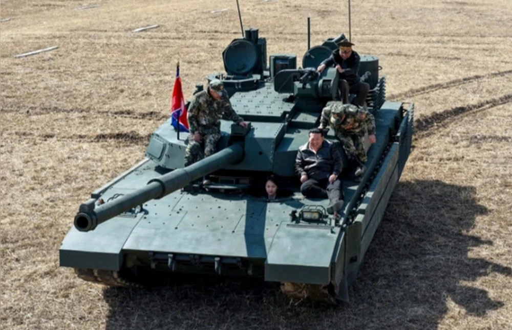 Ким Чен Ын и его дочь Ким Чжу Э запечатлены на фоне танка во время учений, проходивших на учебной базе Корейской народной армии.Эти кадры были опубликованы Центральным телеграфным агентством Кореи (ЦТАК), где видно, как Ким Чен Ын располагается рядом с танковым флагом КНДР, а его дочь выглядывает из люка механика-водителя.