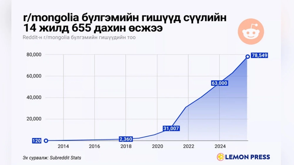 🕰️ Пекинская Олимпиада: сообщество r/mongolia было создано во время Олимпийских игр в Пекине в 2008 году, и с 2012 года его численность увеличивается в среднем на 75.6% в год.