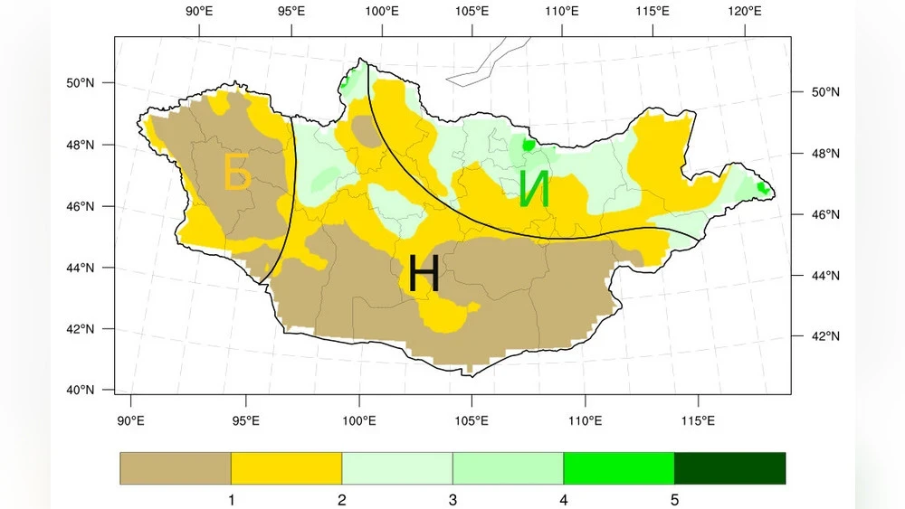 В западных аймаках температура в этом месяце, как ожидается, будет соответствовать среднемноголетним значениям. Однако в Баян-Өлгий, Увс, Ховд, Завхан и западной части Говь-Алтая уровень осадков окажется ниже нормы, в то время как в остальных регионах он останется в пределах средних значений.